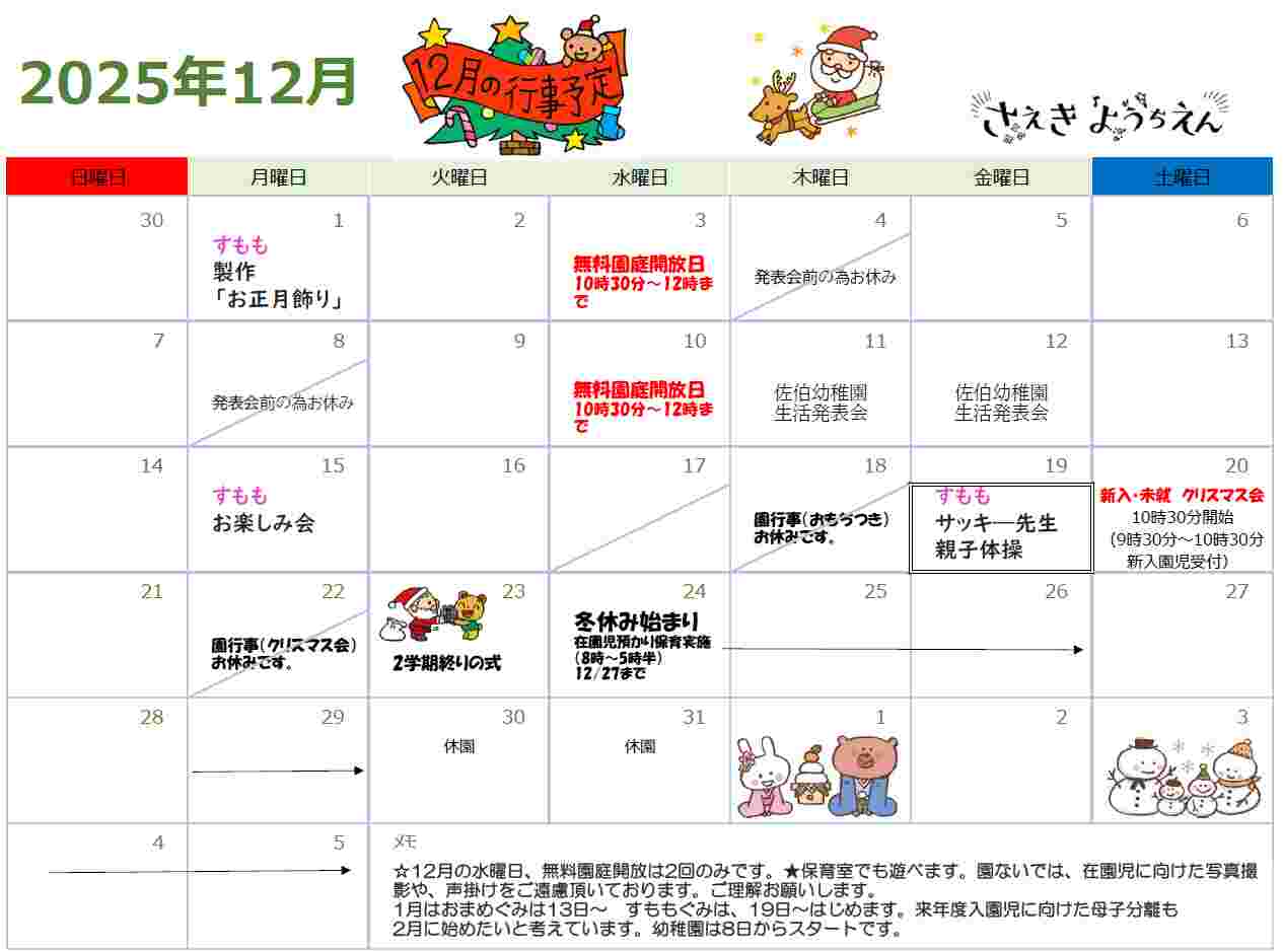 12月は佐伯幼稚園の生活発表会がありますので、すももぐみは少なくなります💦